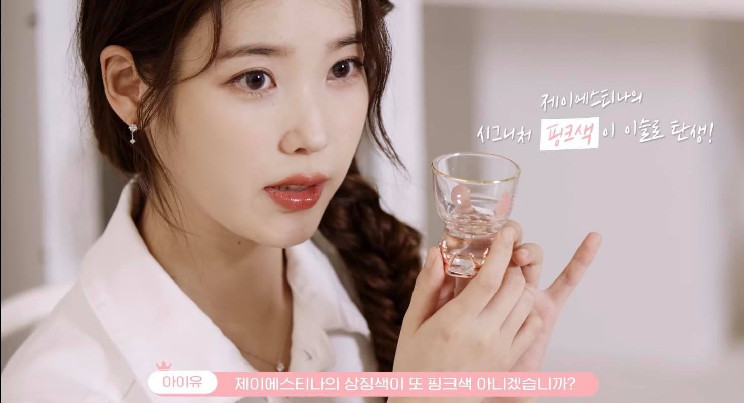 韩星IU人气爆棚,各种代言也接到手软,最近同样都由IU担任代言人的韩国饰品J.ESTINA和真露烧酒,两个品牌就借由IU打破次元壁,跨界合作推出项链加烧酒杯的“梦幻组合”,项链坠饰做成水滴形状,加上水钻点缀超闪亮,“粉红皇冠烧酒杯”造型更是仙气破表。