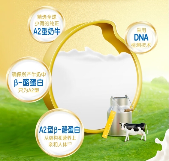 因此,高钙奶粉QQ星榛高铂金装的配方中添加了添加65mg/100g高量乳铁蛋白和酵母β-葡聚糖,为孩子的健康加强防线。还特别添加了DHA、ARA两种优质不饱和脂肪酸,以及胆碱、牛磺酸、磷脂等,为孩子眼脑发育补充营养。并且还添加了有益孩子肠道健康的益生元、益生菌配方专利[3],帮助孩子更好吸收食物中的营养。这款高钙奶粉优选鲜活A2生牛乳,富含A2-β酪蛋白,不仅易于消化吸收还有助于保护孩子的肠胃健康。
