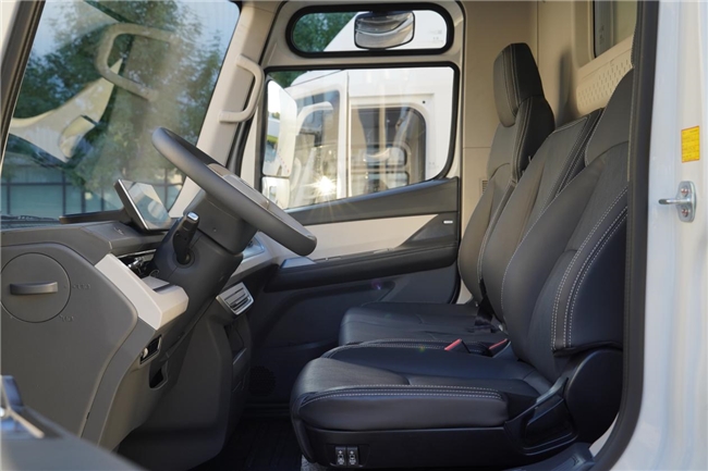 驾驶室内的纯平地板和最高2.26米的内高设计,打破了传统轻卡的空间局限,让驾驶室从单纯的"工作空间"升级为"移动生活空间"。