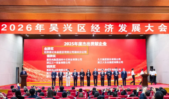在湖州区域,珀莱雅股份旗下公司获评2025年度湖州市“金象”企业,成为唯一获此殊荣的化妆品企业;湖州分公司更是一举拿下2025年度杰出贡献企业金牌奖、“亩均税收”十强企业、省级工业互联网平台三项殊荣,珀莱雅股份创始人、董事长侯军呈受邀出席相关大会并上台领奖,多项荣誉既是对企业经营成果的肯定,也凸显了其助力区域经济提质增效的重要作用。