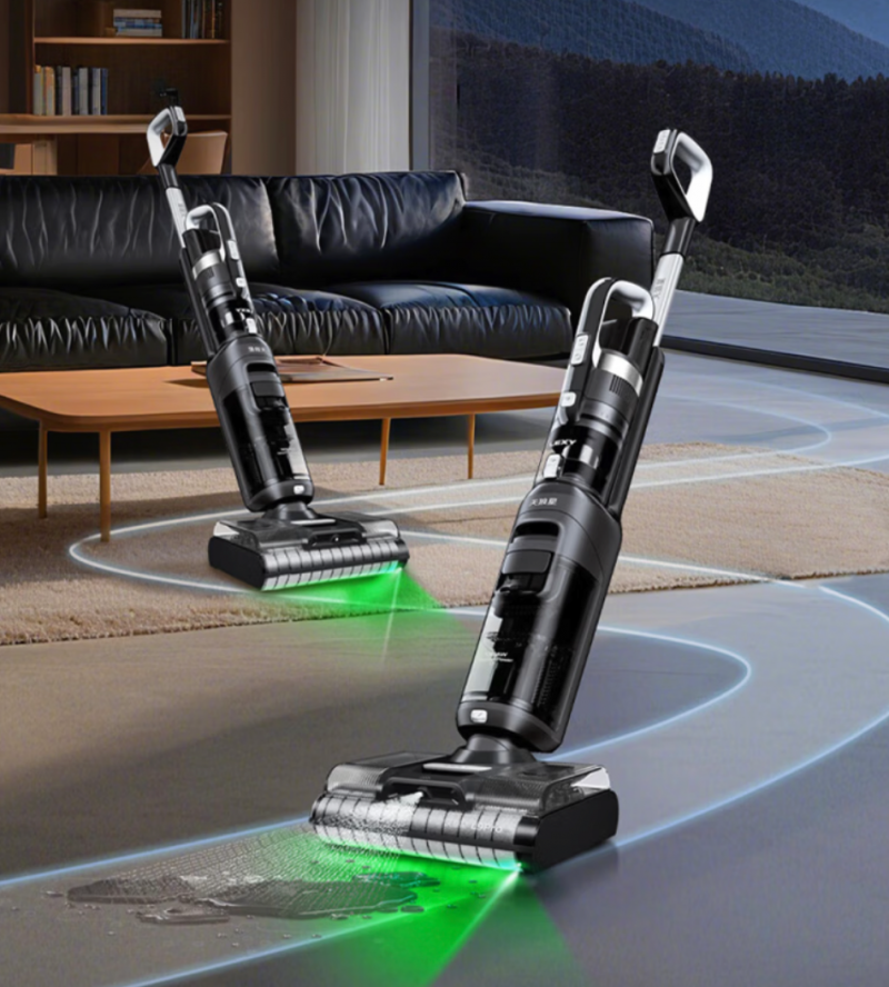 厨房地面的油污是最难处理的。炒菜溅出的热油,调料瓶滴落的酱油醋,还有洗菜时飞溅的水花,混合在一起,黏糊糊的。普通拖把拖完,地上还是油腻腻的,拖布更是怎么都洗不干净。莱克天狼星S10 Pro的洗地功能,专为这类顽固污渍设计。它采用“前吸后洗”双滚刷设计,前面滚刷先把干垃圾和浮尘吸走,后面才喷水湿拖,干湿垃圾不会混在一起变成泥。微水洗地技术精准控制水量,配合双滚刷对向旋转,高速擦拭的同时能有效刮除油污,拖过的地面很快就能干,不留水痕。清洁橱柜底部、冰箱角落时,机身能180度平躺伸进去,配合LED灯照亮黑暗角落,平时够不着的死角也能清干净。
