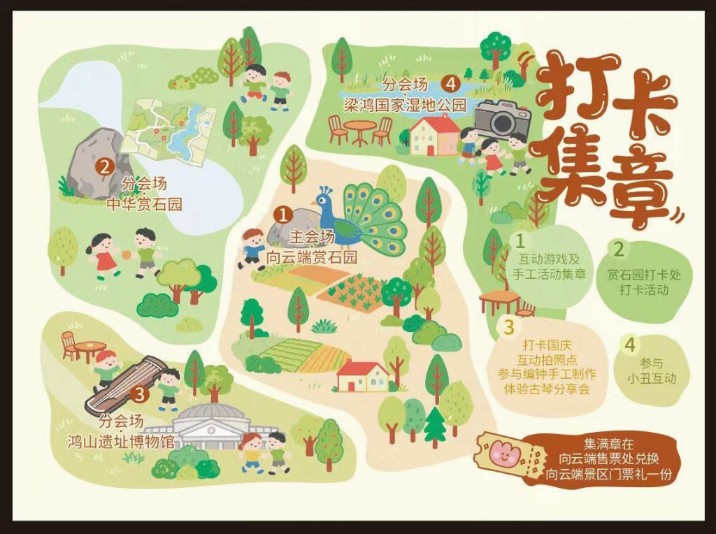 兑换奖励:集齐4枚印章可兑换价值68.8元的向云端·赏石园门票一张;