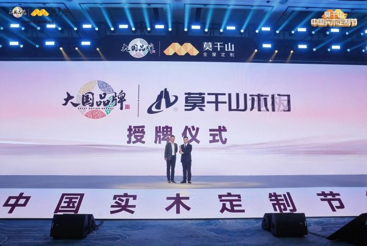莫干山大家居总经理刘元秀代表企业登台接受授牌,这一国家级平台的权威认证,标志着莫干山正式跻身国家品牌战略的第一方阵。这份沉甸甸的责任将激励莫干山以大国品牌的使命感和责任感,持续引领行业向上生长。